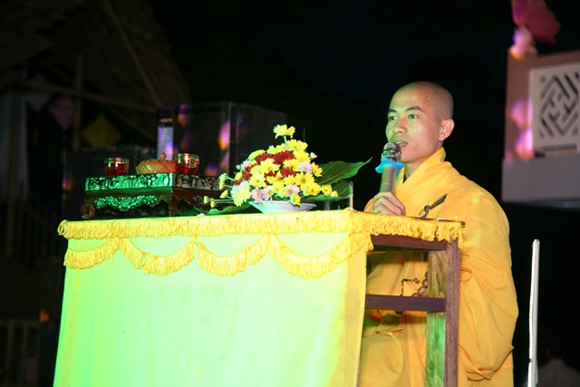 Đại đức Trưởng Ban Tổ chức phát biểu và niêm hoa khai hội