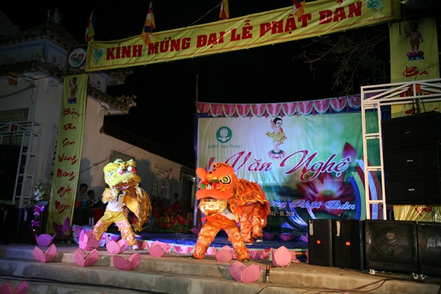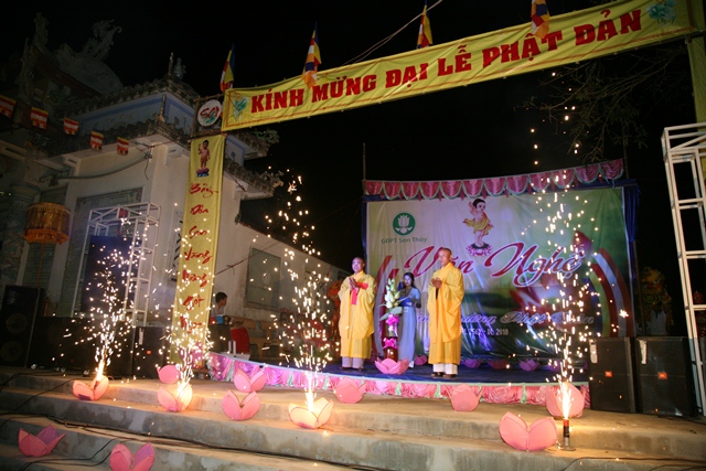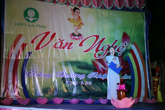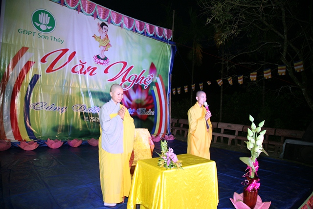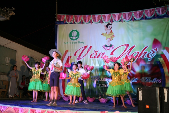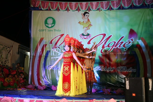 Sau giờ thuyết pháp là chương trình văn nghệ cúng dường Phật đản do GĐPT Sơn Thủy biểu diễn. Mùa Phật đản năm nay, như truyền thống hằng năm toàn thể Huynh trưởng, Đoàn sinh GĐPT Sơn Thủy bằng tất cả tâm thành của mình đón mừng ánh đạo vàng, cúng dường đêm văn nghệ Hát mừng đản sanh tại Lễ đài Niệm Phật đường Sơn Thủy.