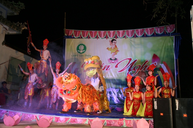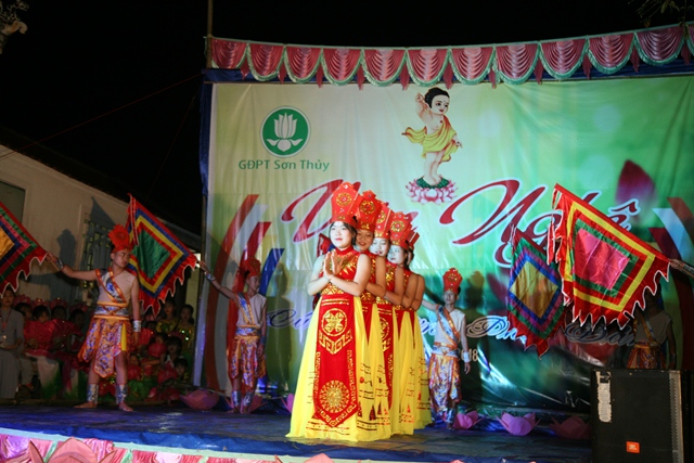 Hôm nay, GĐPT Sơn Thủy đã thể hiện 16 tiết mục cúng dường Đại lễ, những tiết mục biểu diễn liên quan đến Mùa Phật đản và ngợi ca quê hương đất nước, đặc biệt có những tiết mục mang đậm bản sắc đồng bào dân tộc thiểu số anh em vùng cao A Lưới.
