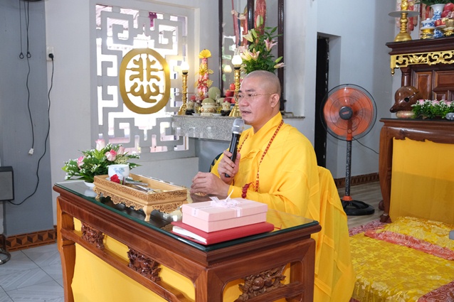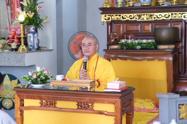 Đại đức chứng minh có lời tán thán và khuyến tấn đến Phật tử Quảng Nguyện