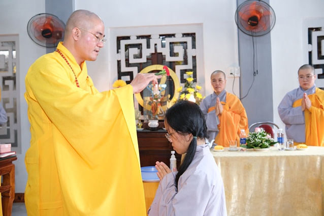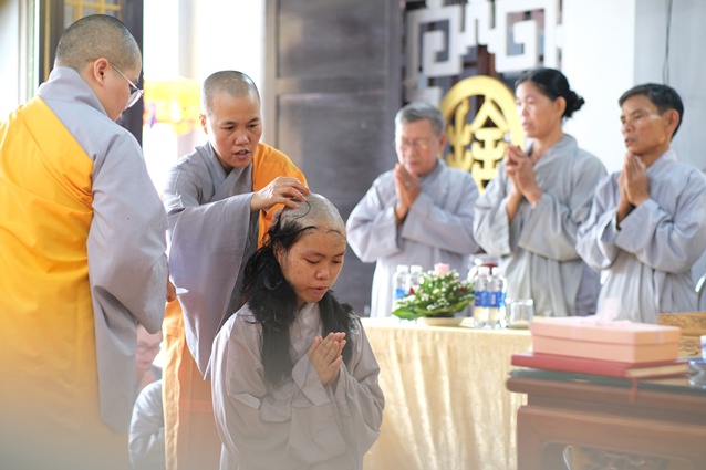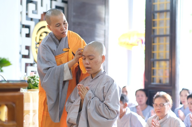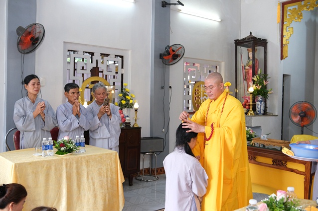 Sau đó, thay mặt chư Tôn đức chứng minh, Đại đức Thích Tâm Phương đã làm lễ thế phát xuất gia cho Phật tử Quảng Nguyện.