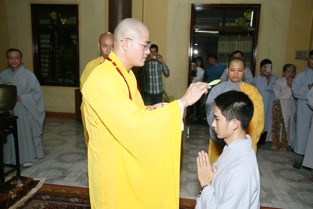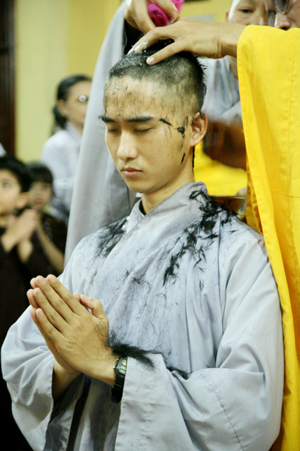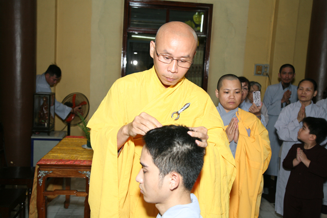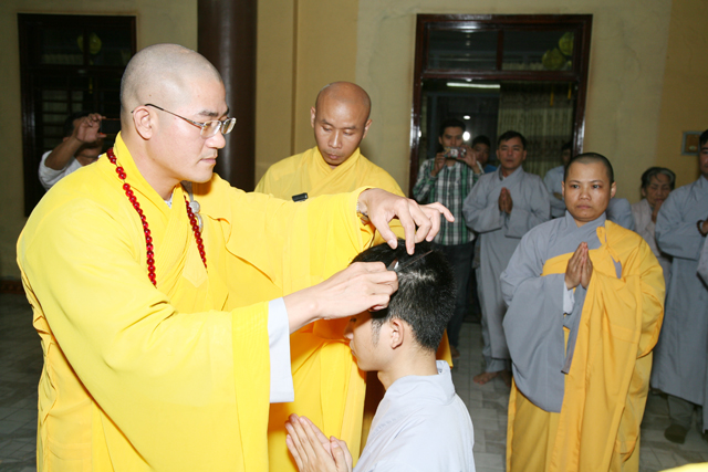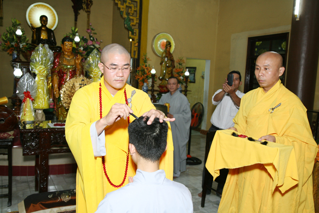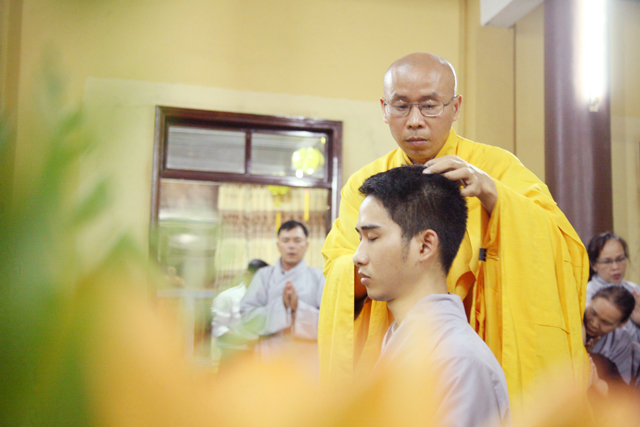 Sau đó, thay mặt chư Tôn đức chứng minh, Đại đức Thích Tâm Phương đã làm lễ thế phát xuất gia cho cư sĩ Nhuận Quang.