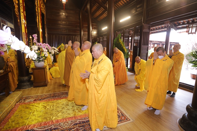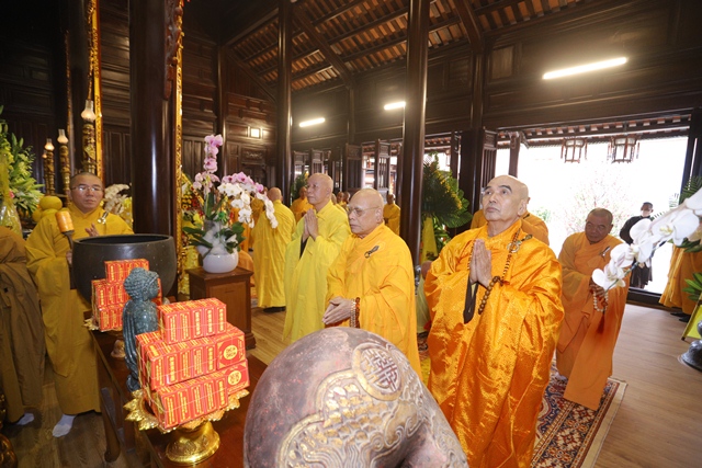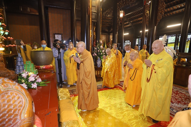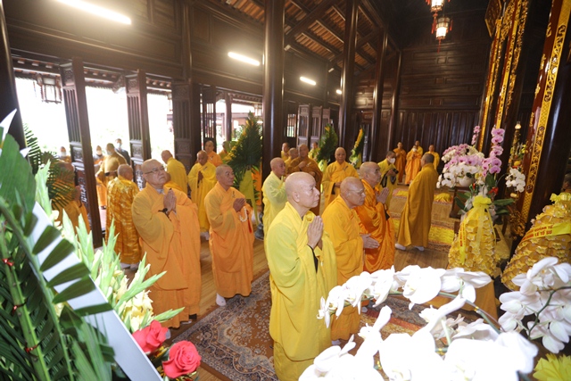 Tưởng nhớ và tri ân công đức Đại lão Hòa thượng Thích Tịnh Khiết dành cho Đạo pháp và Dân tộc, chư Tôn Thiền đức Tăng Ni đã cung đối trước di ảnh Đại lão Hòa thượng, thành kính dâng nén tâm hương tưởng niệm Giác linh Ngài, nhân 49 năm Đức Tăng Thống viên tịch.