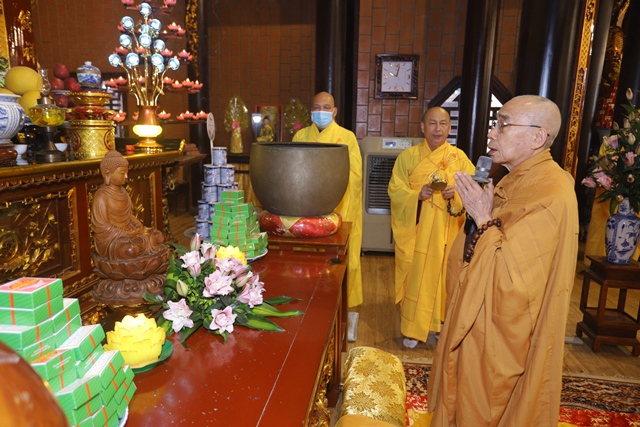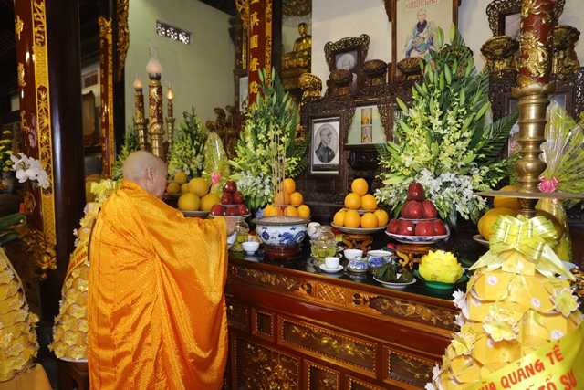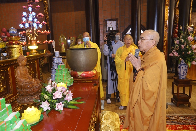 Hoà thượng Thích Quang Nhuận cử hành nghi thức cúng ngọ