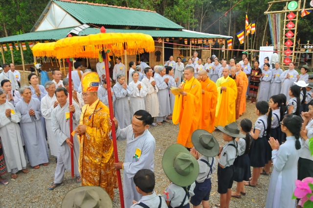 Buổi lễ diễn ra dưới sự chứng minh của Đại Đức Thích Tâm Phương, Trưởng BTS GHPGVN huyện A Lưới, Trưởng ban tổ chức Đại lễ Phật Đản cùng chư Tôn Đức thường trực BTS.