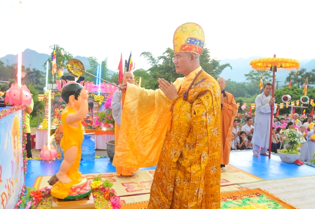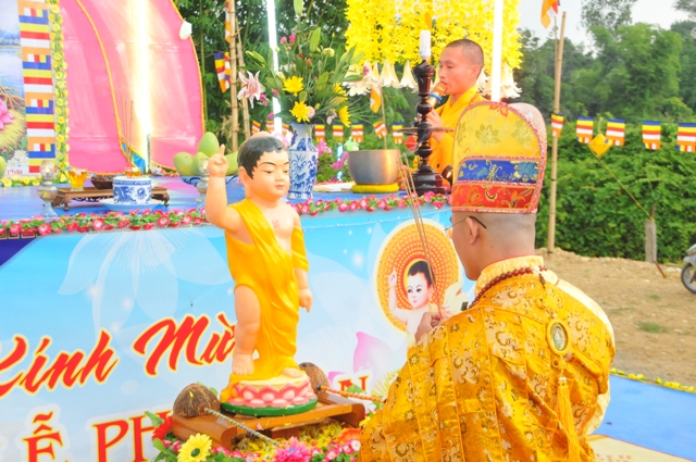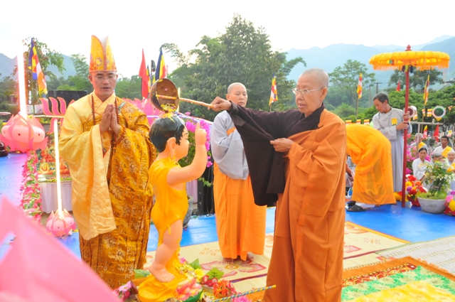 Lễ tắm Phật là một phần nghi lễ quan trọng không thể thiếu trong Đại lễ Phật đản. Tương truyền, khi Đức Phật ra đời, có chín con rồng phun hai nguồn nước nóng lạnh rưới lên kim thân Đức Phật. Nước được dùng để tắm Phật là nước Bát công đức có công năng kỳ diệu tẩy sạch thân nghiệp chướng ô uế, rửa sạch tâm phiền não trần lao của chúng sanh.