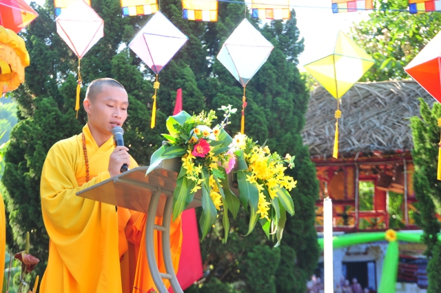 Đại đức Thích Tâm Phương, Trưởng BTS - Trưởng BTC đã tuyên đọc diễn văn Đại lễ của Hòa thượng Chủ tịch HĐTS GHPGVN.