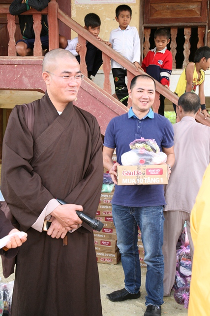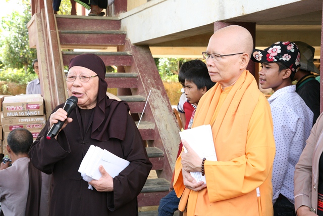 Thay mặt bà con đồng bào được giúp đỡ, Đại đức Trưởng Ban Trị sự đã chân thành cảm ơn đến Ni trưởng và Ni sư cùng quý Phật tử Tổ đình Bảo Quang Sư Nữ, Tịnh xá Ngọc Cơ đã không quản ngại đường sá xa xôi về tại đây thăm và tặng quà cho bà con địa phương, những tặng phẩm này gói trọn tinh thần từ bi cứu khổ của người con Phật với phương châm phụng sự chúng sanh thiết thực cúng dường chư Phật.