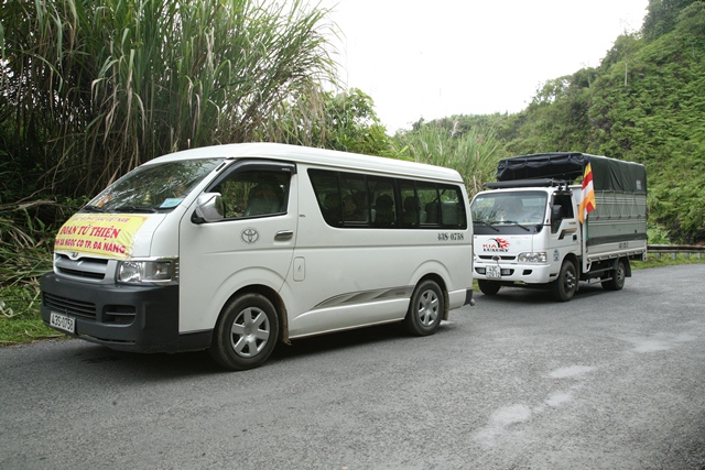 Đại đức Thích Tâm Phương, Trưởng Ban Trị sự; Đại đức Thích Tín Nhơn, Phó Trưởng Ban Thường trực Ban Trị sự; Sư cô Thích Nữ Diệu Trung, Phó Ban Trị sự, Trưởng Ban TTXH huyện A Lưới đã đón tiếp quý Ni trưởng và phái đoàn.