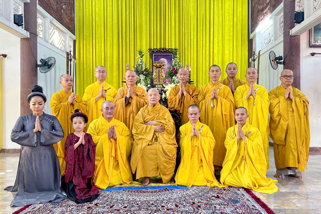 Trang nghiêm đối trước di ảnh cố Trưởng lão Hòa thượng Phó Pháp chủ HĐCM, Viện trưởng sáng lập Học viện PGVN, chư Tôn Giáo phẩm thành kính cầu nguyện Giác linh cố Trưởng lão Hòa thượng cao đăng thượng phẩm, quả chứng vô sanh.