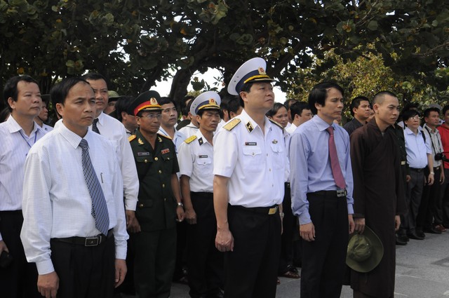 Sau 2 ngày hành trình trên biển tàu HQ 561 đưa đoàn cập cảng Đảo Trường Sa lớn. Đoàn tiến hành những nghi lễ, công việc, thăm hỏi tặng quà CB – CS, Nhân Dân trên đảo, 4 giờ chiều cùng ngày lễ giao nhận Pho tượng Đức Quán Thế Âm Bồ Tát được tiến hành trọng thể trước Tam Quan Chùa Trường Sa lớn với những nghi lễ của Phật Giáo với sự có mặt đông đủ lãnh đạo và thành viên trong đoàn Công Tác cùng đại diện cán bộ chiến sĩ và nhân dân trên đảo.