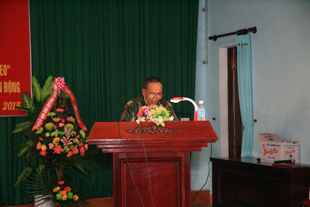 Ông Pi Loong Mái, Chủ tịch UBMT TQVN huyện A Lưới phát biểu khai mạc hội nghị