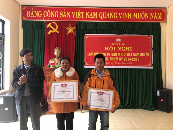 Trao giấy khen của UBMT TQVN tỉnh Thừa Thiên Huế và huyện A Lưới