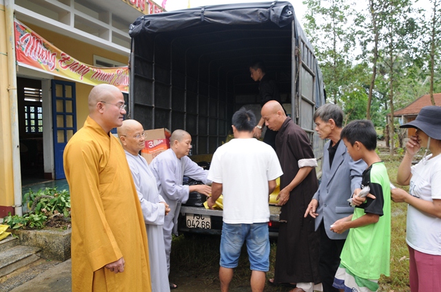 Đại đức Thích Tâm Phương thăm hỏi động viên bà con nơi đây