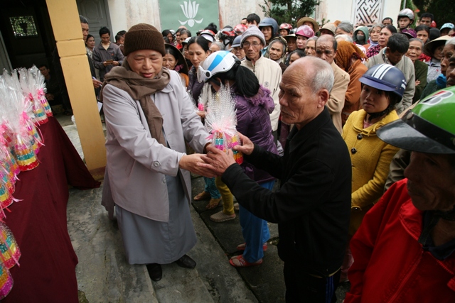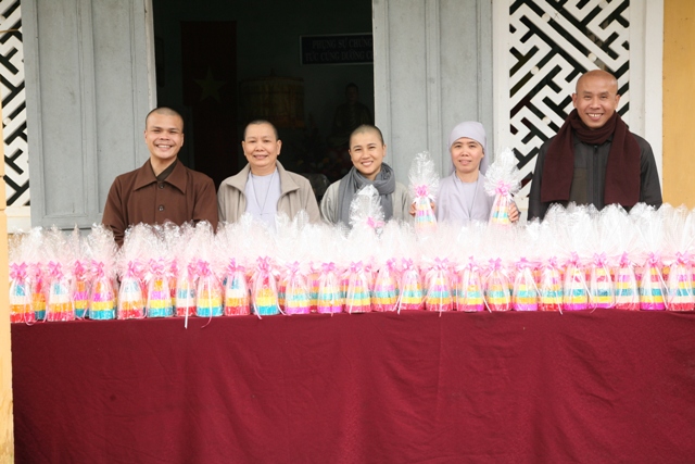 Trước khi trao tặng, Đại đức Trưởng Ban Trị sự và Ni Sư Thích Nữ Như Huy gửi lời chúc Tết đến quý Đạo hữu Phật tử cùng gia quyến, Đại đức mong rằng, năm Đinh Dậu, quý Phật tử nổ lực tinh tấn tu học hơn nữa, tích cực tham gia các Phật sự của Giáo hội; đồng thời qua buổi tặng 1000 chiếc bánh này, Ban Trị sự chân thành cảm ơn sâu sắc đến Ni sư Như Huy đã phát tâm hổ trợ 1000 chiếc bánh và trao tặng 50 phần quà Tết đến quý Đạo hữu Phật tử huyện A Lưới.