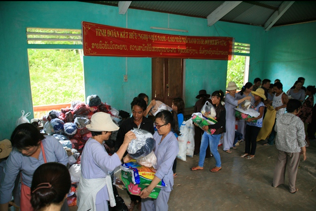 Sáng ngày 15/8, tại nhà sinh hoạt cộng đồng thôn Pi Reh 2 - xã Hồng Thủy - huyện A Lưới đoàn từ thiện Nhân Tâm (Tp. Đà Nẵng) cùng Ban Trị sự GHPGVN huyện A Lưới đã đến thăm hỏi và trao 220 phần quà cho các hộ gia đình có hoàn cảnh đặc biệt khó khăn tại xã Hồng Thủy, huyện A Lưới. Mỗi xuất quà có giá trị gần 500.000 đồng gồm: gạo, quần áo, chăn bông cùng một số thực phẩm khác.