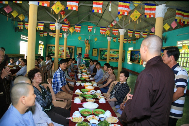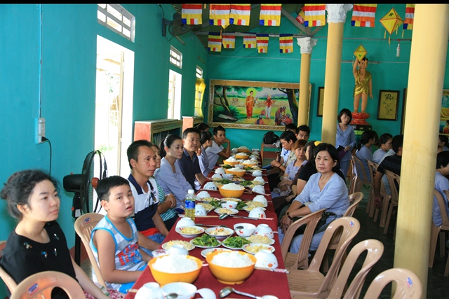 Kết thúc buổi trao quà, đoàn từ thiện Nhân Tâm đã ghé về NPĐ Sơn Thủy để dùng cơm trưa thân mật do Ban Trị sự đón tiếp