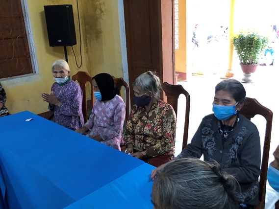 Bà con đến nhận quà