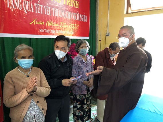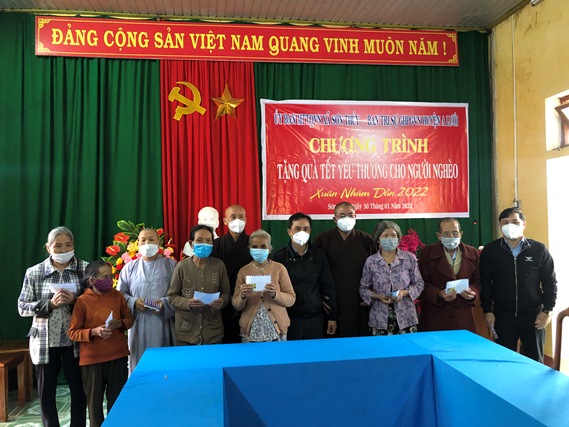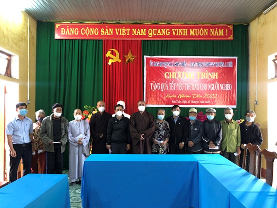 Sáng ngày 30-01, Ban Trị sự GHPGVN huyện A Lưới kết hợp cùng UBMT TQVN xã vận động Gia đình Phật tử Trần Ninh Thái, pháp danh Nguyên Thành (hiện trú tại Mỹ quốc) trao tặng 150 phần quà (30 triệu đồng), mỗi phần quà trị giá 200.000đ đến các hộ gia đình có hoàn cảnh khó khăn tại xã Sơn Thủy, huyện A Lưới nhằm chia sẻ Tết yêu thương đến với các cụ già neo đơn, những hoàn cảnh khó khăn để bà con có một cái tết cổ truyền đầy đủ hơn, ấm cúng.