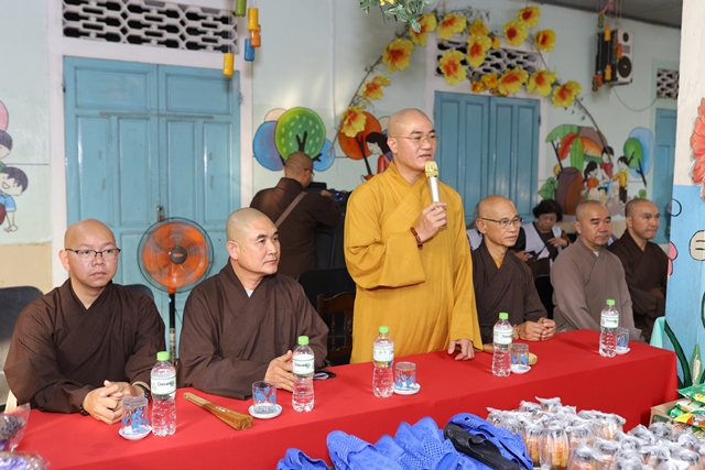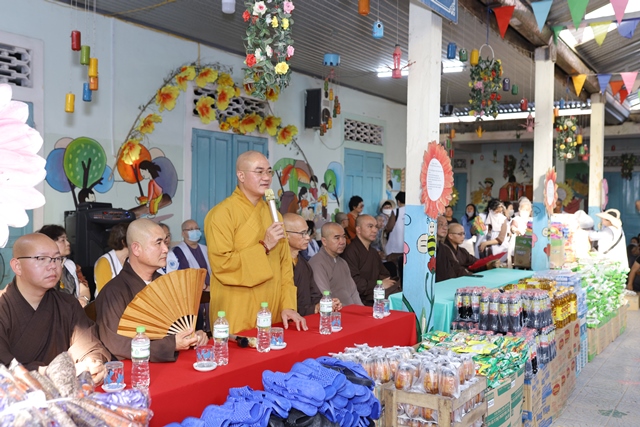 Tại buổi lễ Đại đức Thích Tâm Phương đã chia sẻ pháp thoại cùng bà con có hoàn cảnh khó khăn. Đại đức nhấn mạnh đến quý bà con khuyết tật. Nói đến đạo Phật là nói đến tinh thần nhân quả, nói đến sự giác ngộ của một con người. Con người sinh ra đủ phước báo hay bất hạnh là do tích lũy nghiệp từ nhiều đời mà hiện tại cho ra kết quả khác nhau. Mọi việc đều có thể thay đổi và cải thiện tốt hơn nếu chúng ta có ý chí và quyết tâm cao độ. Tất cả mọi hiện tượng, sự vật trên thế gian này là một dòng chuyển biến liên tục từng phút giây, không có gì là cố định cả.