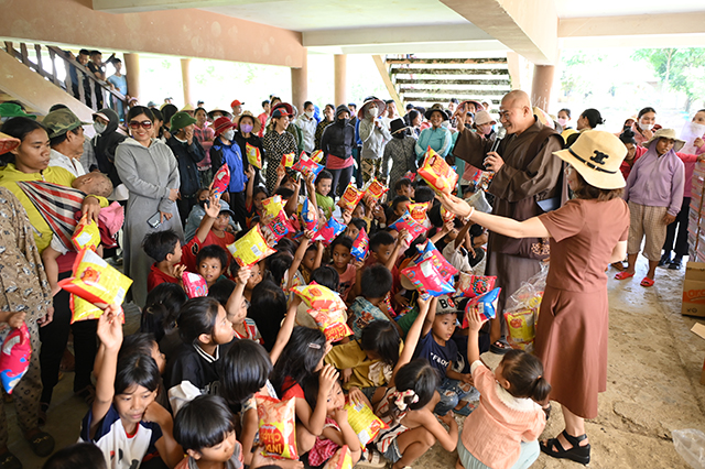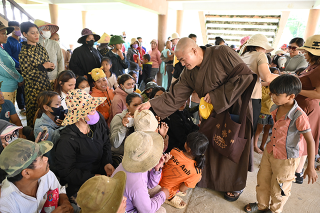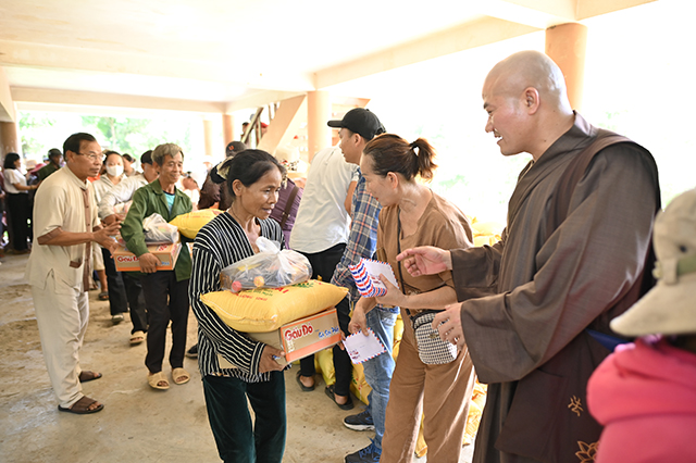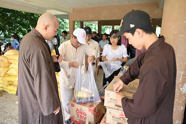 Tại buổi trao quà, phái đoàn đã trao tặng 200 phần quà, bao gồm: gạo, tịnh tài và các nhu yếu phẩm khác. Mỗi phần quà trị giá 500 nghìn đồng, tổng trị giá hơn 100 triệu đồng được trao đến bà con nghèo tại đây. Món quà trao đến bà con chính là tình cảm và sự sẻ chia của chư Tôn đức, quý Phật tử với bà con có hoàn cảnh khó khăn để góp phần khích lệ bà con hộ nghèo.
