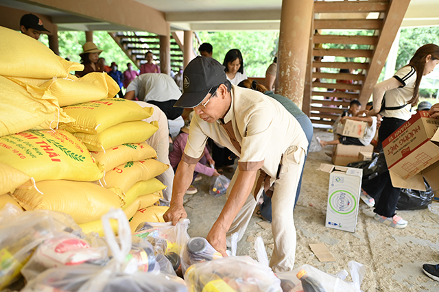 Chuẩn bị nhu yếu phẩm tặng đến bà con nhân dân