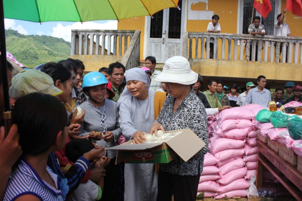 Hướng dẫn phái đoàn từ thiện có Đại đức Thích Tâm Phương – Chánh Đại diện Phật giáo huyện A Lưới; Sư cô Thích Nữ Diệu Trung – Phó Ban Đại diện và Đạo hữu Nguyễn Thị Châu – Thành phố Đà Nẳng cùng quý Phật tử tháp tùng phái đoàn.