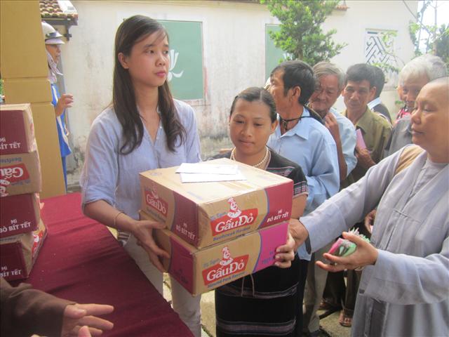 Sư cô Thích Nữ Diệu Trung, Phó Trưởng Ban Trị sự kiêm Trưởng Ban TTXH, Phó Trưởng Ban Tổ chức Đại lễ Phật đản PL. 2558 tại huyện A Lưới cho biết, trong mùa Phật đản này, Ban Tổ chức sẽ tặng quà 3 đợt, đây là lần thứ nhất trao tặng 150 phần quà, mỗi phần quà trị giá 200. 000đ đến với quý Đạo hữu và đồng bào có hoàn cảnh khó khăn, số quà lần này do quý Phật tử tại thành phố Huế ủng hộ, lần thứ hai sẽ thăm viếng và tặng quà tại bệnh viện huyện A Lưới, và lần 3 sẽ thực hiện trong ngày Lễ chính thức Đại lễ Phật đản.