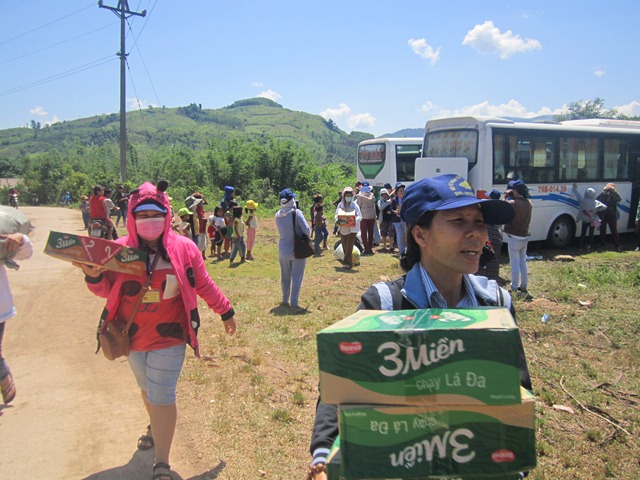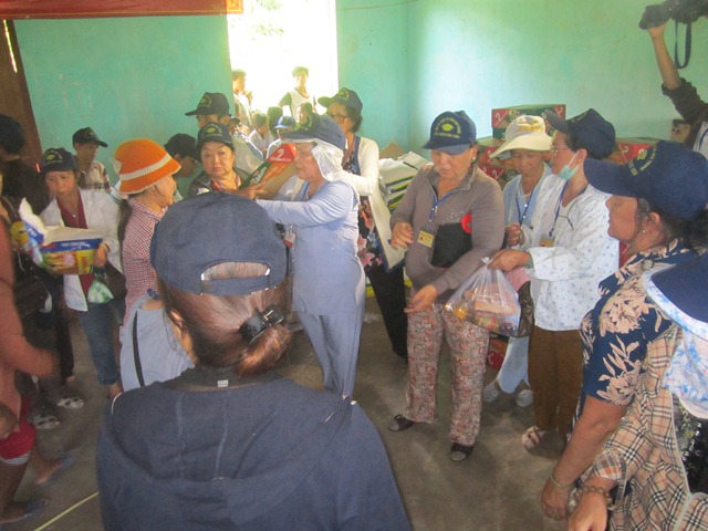 Phái đoàn đã trao tặng 200 phần quà, mỗi phần quà trị giá 250.000đ và nhiều quần áo đã được phái đoàn quyên góp.