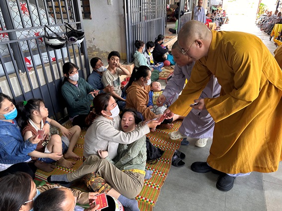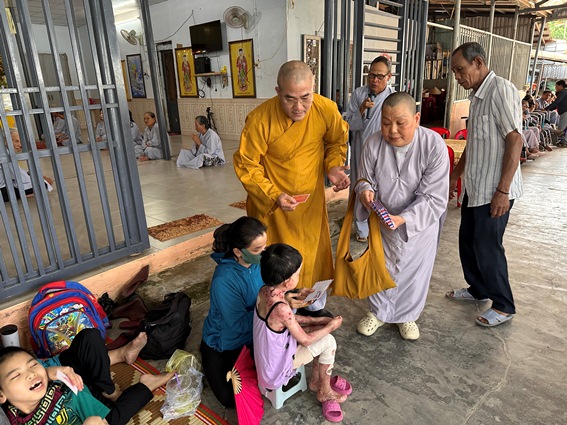 Tại đây, chư Tôn đức và các nhà hảo tâm đã trao 40 suất quà cho các cháu khuyết tật, chất độc màu da cam, có hoàn cảnh đặc biệt khó khăn địa bàn thành phố. Tổng giá trị các suất quà là 40 triệu đồng do các Phật tử Dương Văn Hát, Pháp danh Quảng Trí Đức, Tâm Tịnh Thọ, Tâm Nhàn, Diệu Lan, Tịnh Chân, Ngọc Hoa ở Mỹ Quốc phát tâm ủng hộ nhân mùa Phật đản Phật lịch 2569.