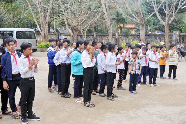 Tại đây, Đại đức Thích Tâm Phương, Trưởng Ban Trị sự GHPGVN huyện A Lưới đã gửi lời động viên thăm hỏi đến quý Thầy, Cô giáo đã không quản ngại khó khăn vì thế hệ kế thừa con em chúng ta trong sự nghiệp trồng người, đồng thời Đại đức dặn dò đến các em cố gắng học tập chăm ngoan, vâng lời quý Thầy cô giáo.