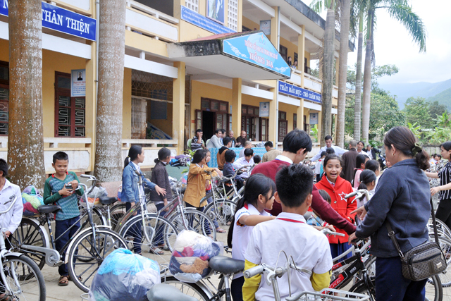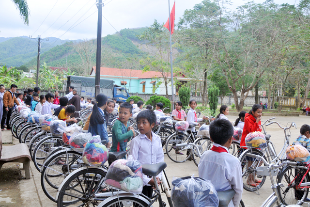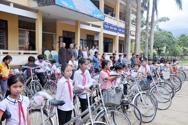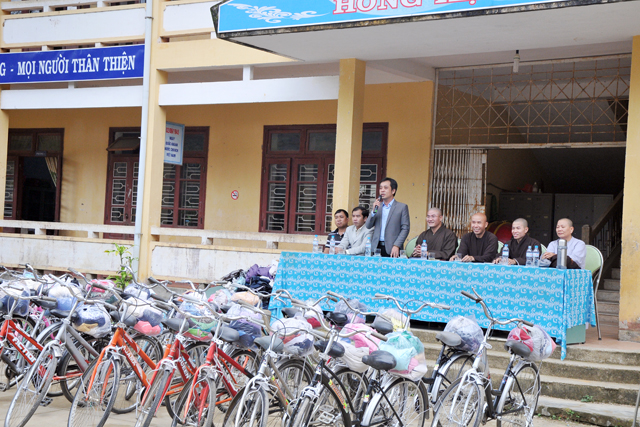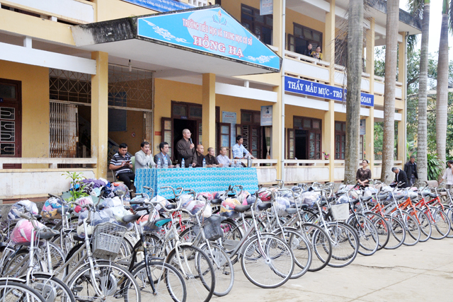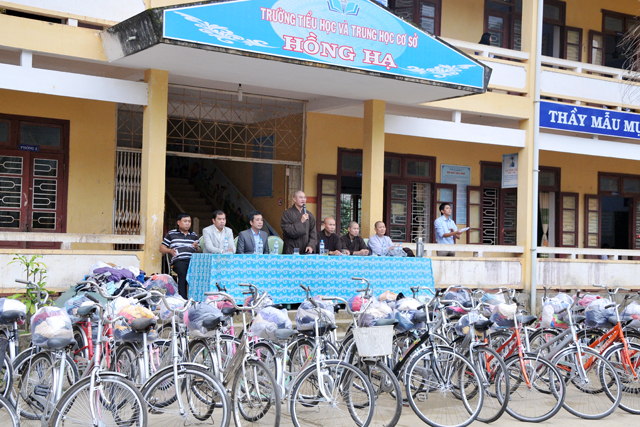 Tại đây, 45 chiếc xe đạp đã được trao cho các em học sinh nghèo trường THCS và Tiểu học Hồng Hạ có hoàn cảnh đặc biệt khó khăn, vượt khó vươn lên trong học tập. Mỗi chiếc trị giá gần 700.000 đồng.