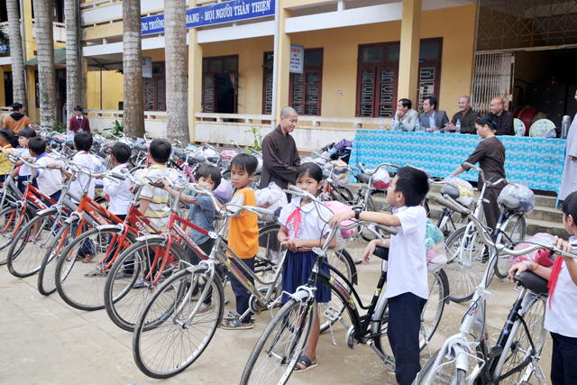 Trong thời gian qua, Ban Trị sự đã vận động Ni sư Thích Nữ Hương Trí, chùa Thành Nội, thành phố Huế và quý Phật tử: Diệu Đức - Võ Thị Lan; Nguyên Hương - Hoàng Thị Lệ Thủy; Nguyễn Thị Kim Anh (Tp.HCM); Dư Thị Kim Chi; Nhuận Tâm - Phan Thị Hương; Như Nghiêm - Hồ Thị Thùy Trang (Tp. Huế) tặng xe đạp dép, áo quần cho học sinh nghèo hiếu học và các em học sinh có hoàn cảnh đặc biệt khó khăn trên địa bàn.