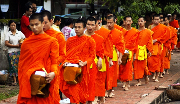 Ngày nay, trước làn sóng văn minh vật chất sẵn sàng xóa đi những truyền thống tốt đẹp từ ngàn xưa, thì thế giới văn minh phương Tây lại ngưỡng mộ hình ảnh những vị sư sống đời đạo hạnh, khước từ tiện nghi vật chất, đi xin người dân bố thí, và ngược lại người dân cung kính quỳ để nhận phước từ vị sư. Cả hai phía đều nhận và cho trong lặng lẽ: Người nhận bố thí thì cho phước đức tu hành, người bố thí thì nhận phước đức từ người được cho. Du khách đến từ các nước phương Tây khát khao muốn chứng kiến hình ảnh giản dị mà cao cả đó, hơn nữa, chính họ muốn sống, muốn tham dự như là một Phật tử cúng dường.