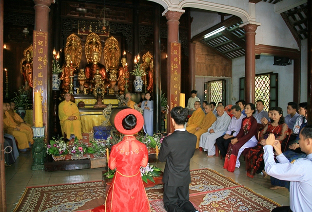 Sau lời chỉ dạy của Thượng tọa chứng minh, chương trình lễ Hằng thuận kết thúc bằng khóa lễ cầu nguyện cho đôi bạn trẻ với nghi lễ truyền thống chúc phúc cho đôi tân lang, tân nương.