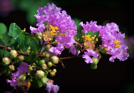 Tử vi (Lagerstroemia indica) thuộc họ bằng lăng (Lythraceae), là loài cây bụi, thân gỗ nhỏ, nhẵn. Lá đơn hình bầu dục, mọc đối, dính sát thân cành. Hoa có 6 cánh, hương thơm dịu, gồm các màu hồng, tím, đỏ, trắng, mọc thành từng chùm ở đầu cành, cánh hoa mỏng nhàu, mép lượn sóng. Chỉ nhụy dài cong, điểm phấn vàng rực rỡ.
